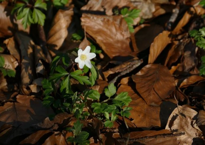 This lovely wood anemone blooms unusually alone. She’s a forerunner, the firstling. Her …