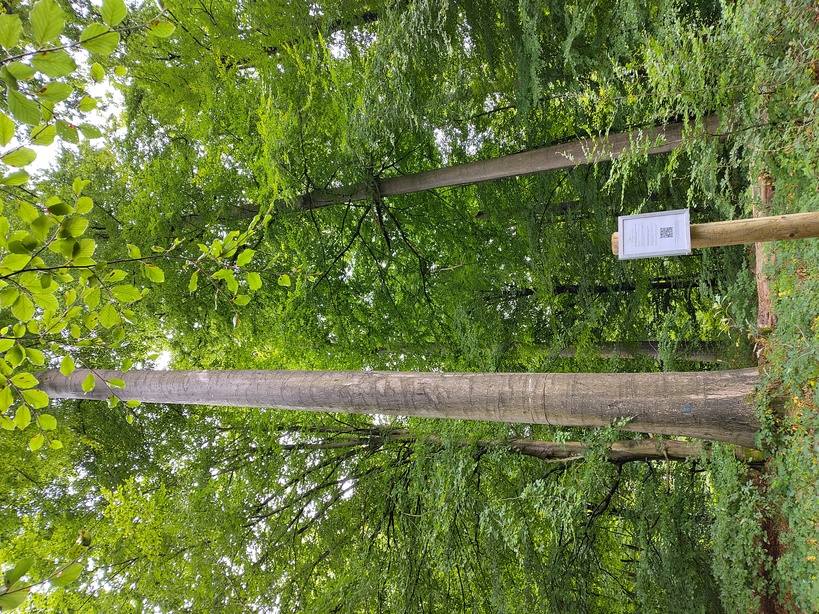 Near my trunk the human artists placed a sign with a QR code on it. By scanning the QR code, the visitor was guided to a web page where story fragments, an artistic soundscape and digital images provided insight into my life and history. What one could see and hear depended on the data sent by the sensors. From hour to hour, one could see the changes in my trunk. The installation invited to appreciate me as an active, growing, changing living being – a being any human can also enter into a relationship with.
