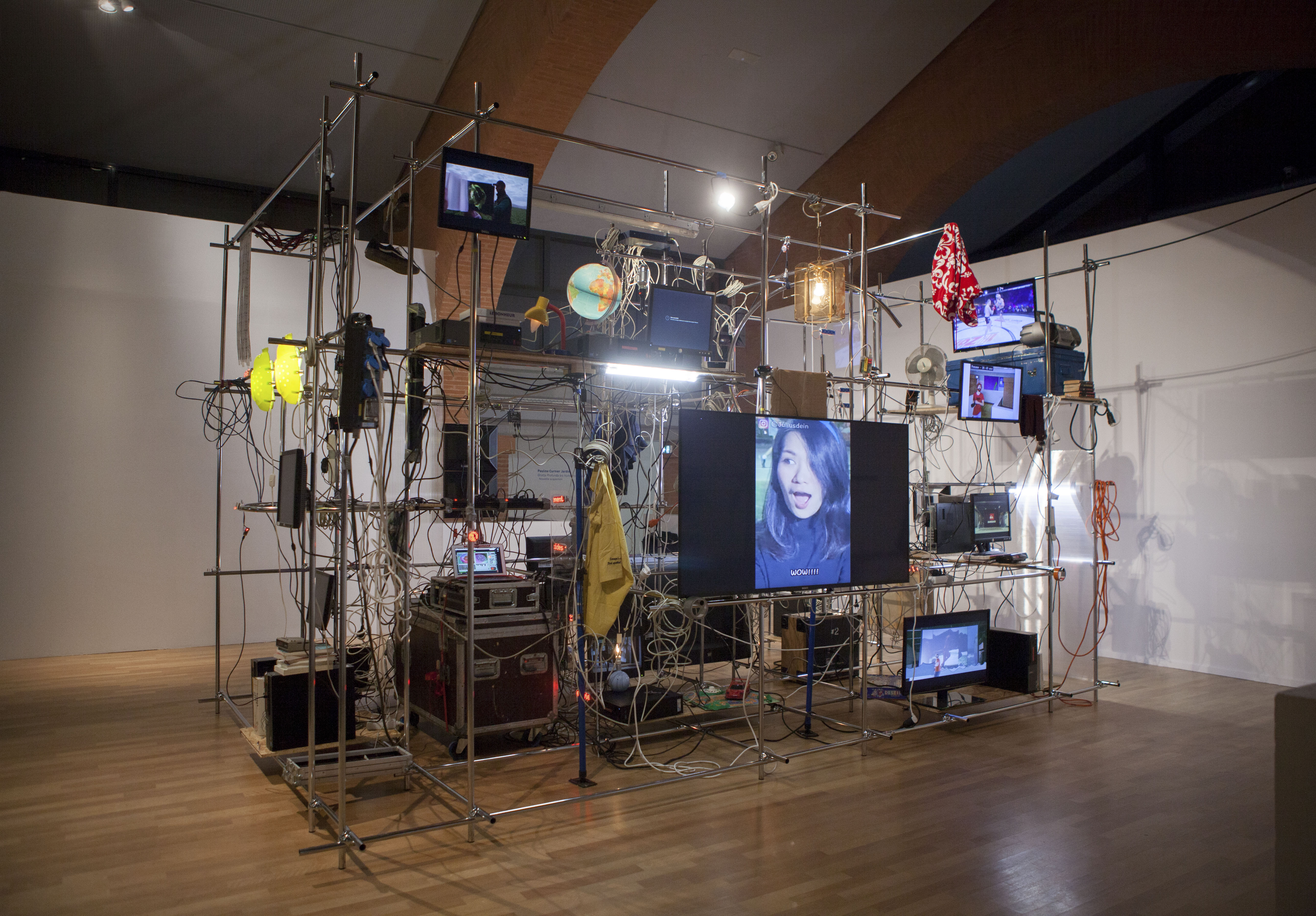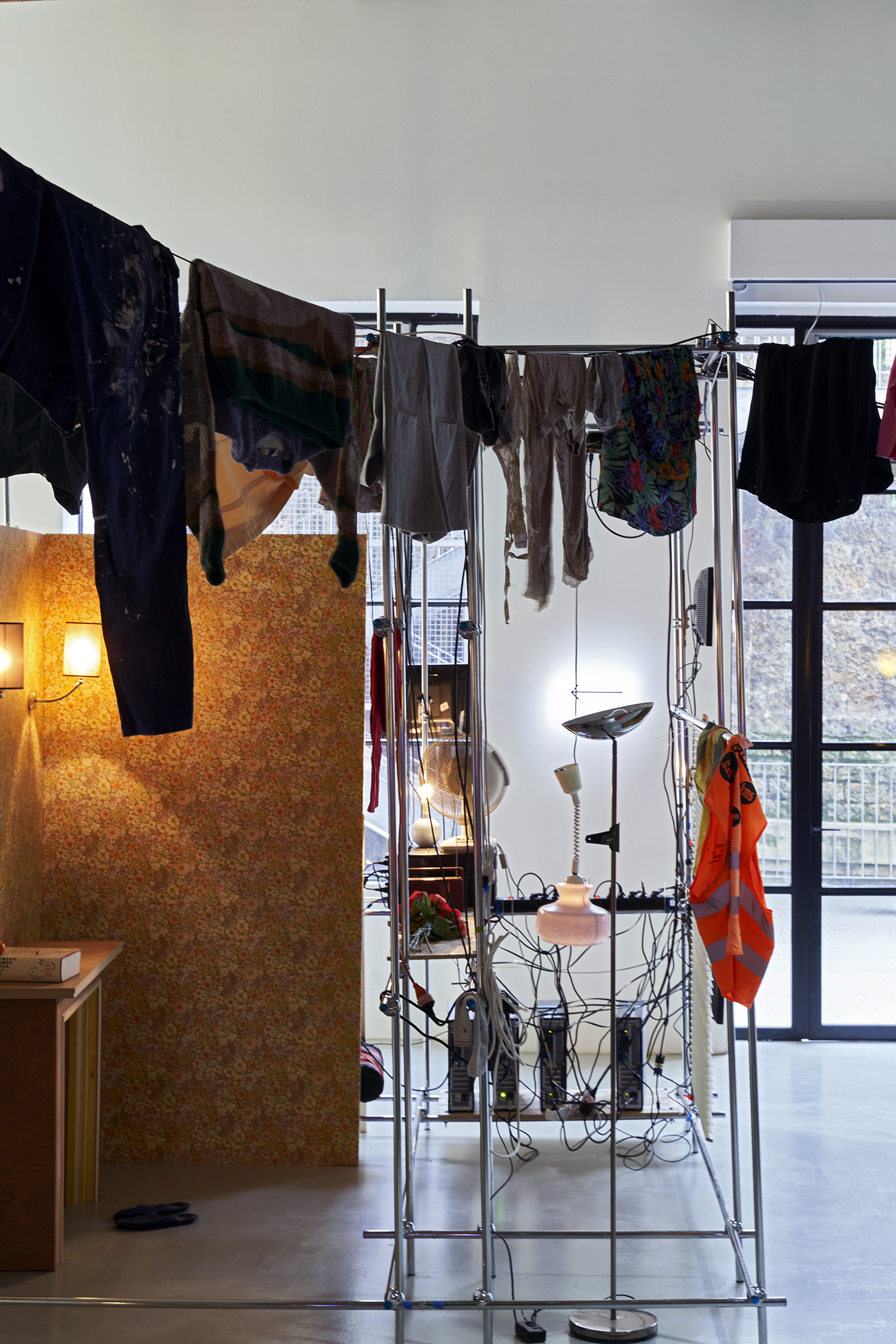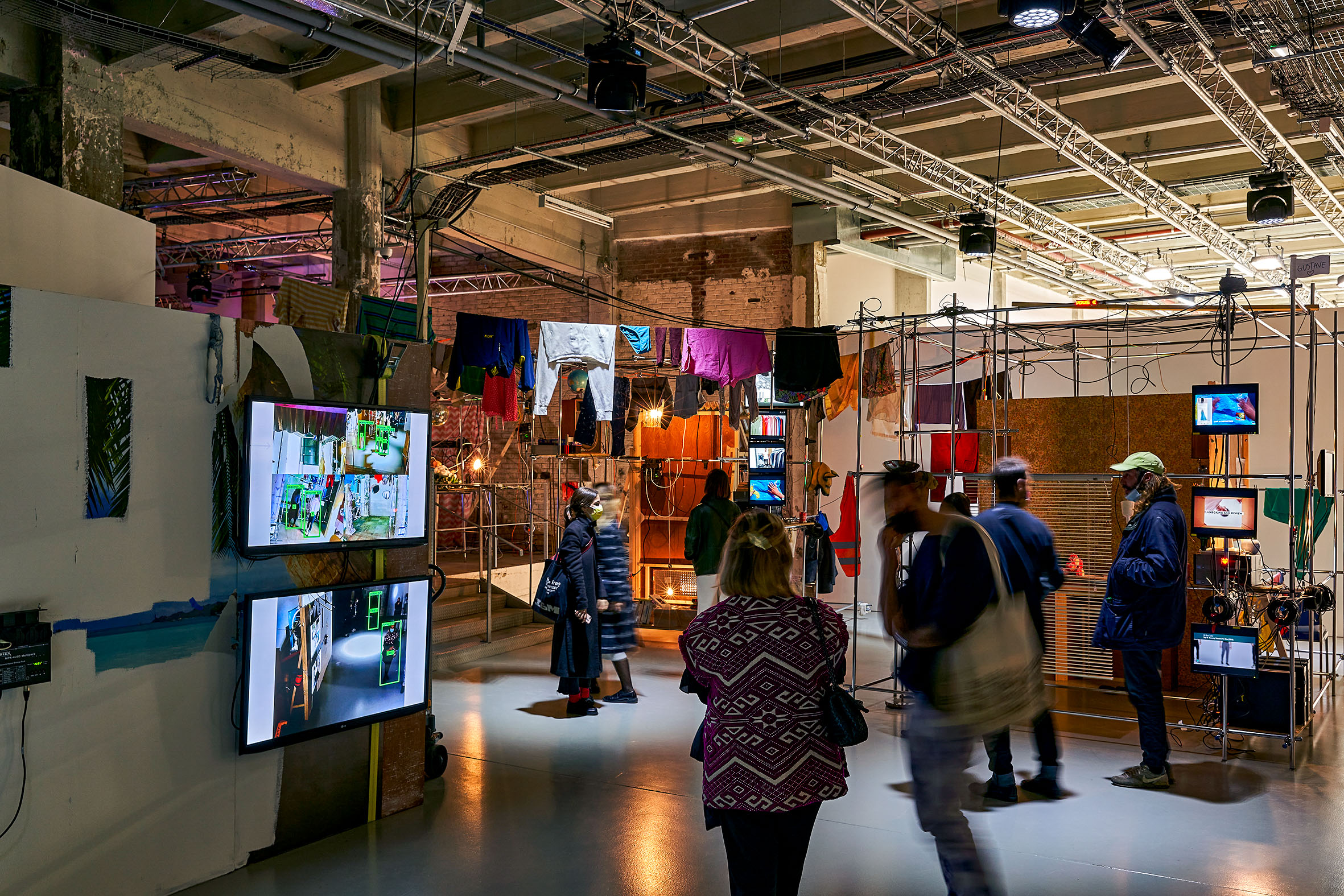 L’installation ressemble à une espèce de data center. Il y avait l’idée de montrer la consommation, montrer ce que cela génère : des bips informatiques, des ordis qui travaillent, les câbles… On parle du cloud comme si c’était dématérialisé, mais en fait cela arrive vraiment à un endroit, un endroit qui récupère tout cela.