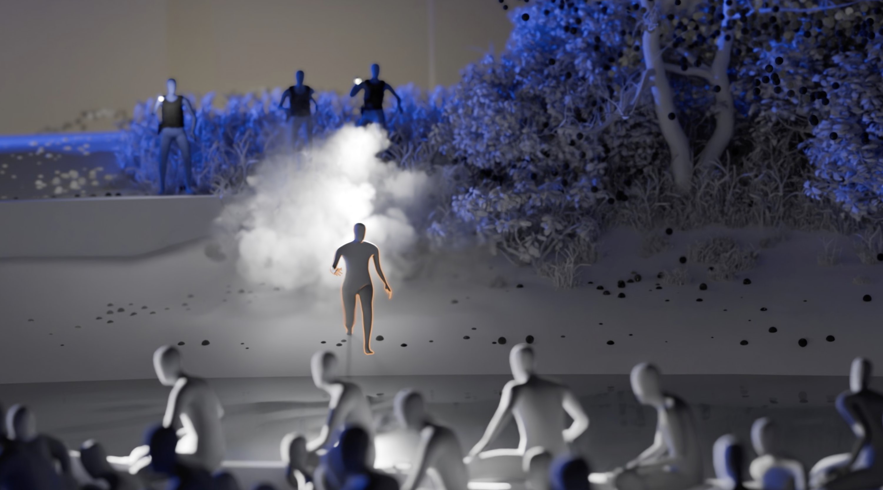 L’expérience commence dans un espace inspiré du sac amniotique, où la voix et l’avatar d’Iyo invitent les joueur·eusess à prendre conscience de leur propre corps et de leurs histoires transgénérationnelles. Ce point de départ suggère que la mémoire et la présence peuvent devenir des formes de résistance face à l’effacement produit par le neurocapitalisme et les récits coloniaux.