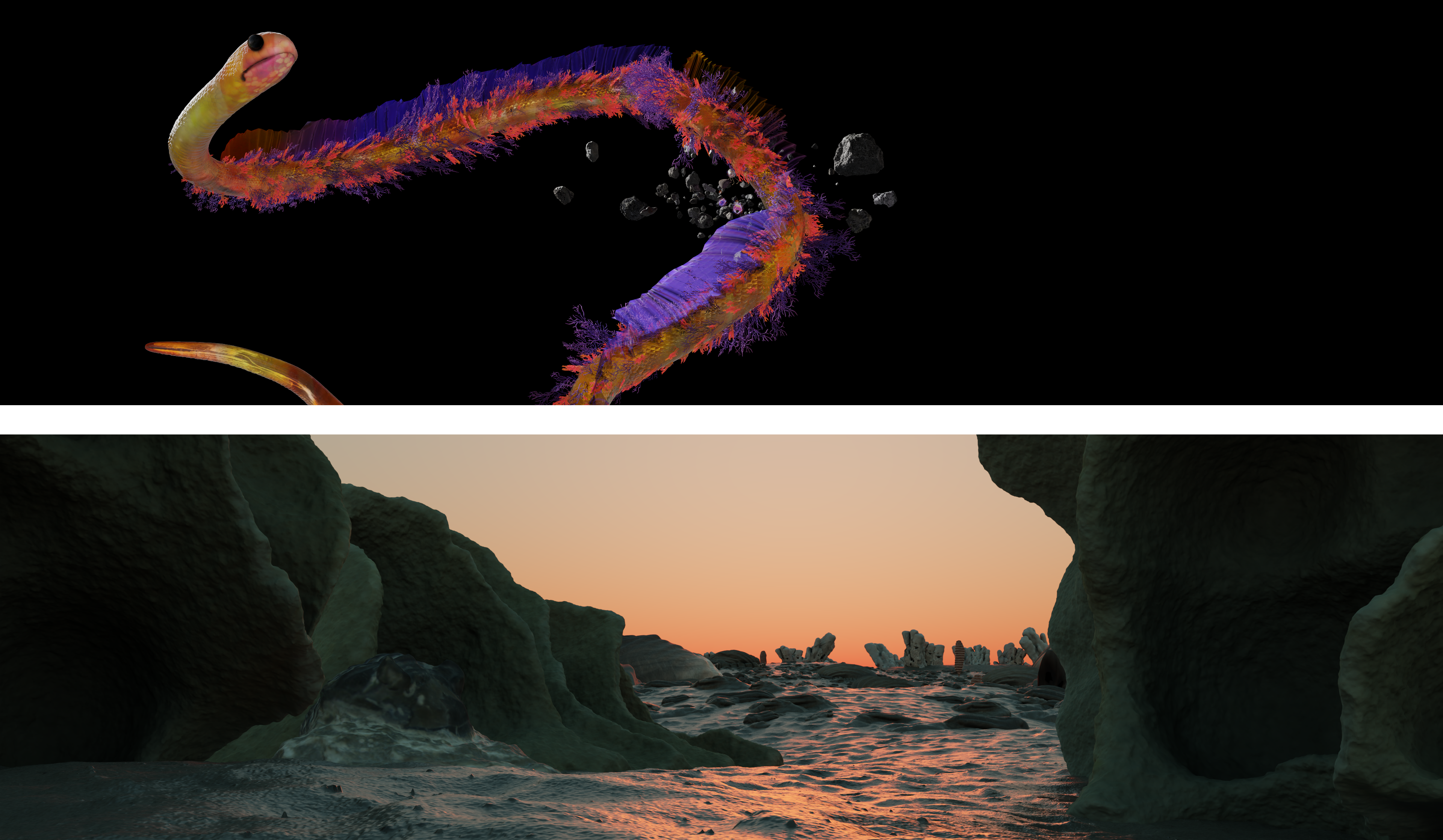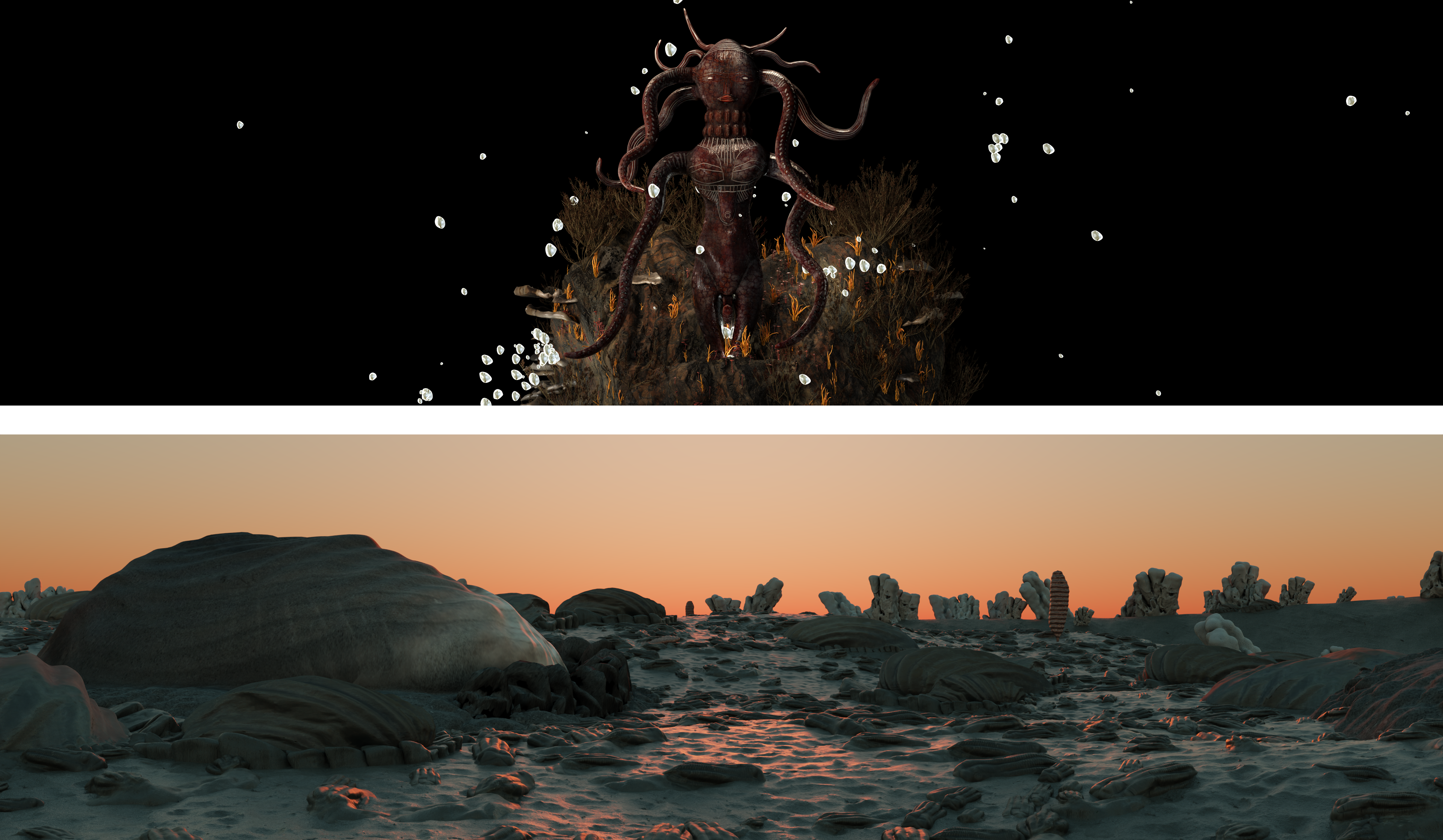 Dans cette boucle, Amma, une divinité créatrice chez les Dogons, jette un fossile dans l’espace qui brise les astéroïdes et crée des étoiles de plancton bioluminescentes. Les étoiles sont ensuite avalées par un serpent astral et se déposent à l’intérieur de son ventre où elles se transforment en fossile. De la bouche du serpent émerge une planète fossile où Nommo, un génie ancestral de l’eau dans les mythes dogons, crée une vie marine. Au sein de cette vie marine évolue une pieuvre qui se transforme en Amma, recommençant le cycle.