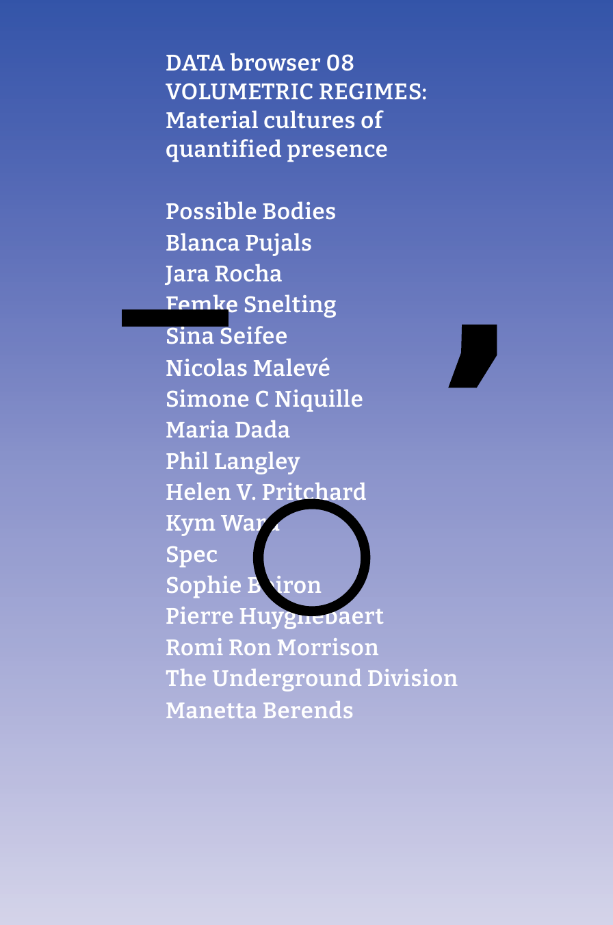 3D computation has historically co-evolved with Modern technosciences, and aligned with the regimes of optimisation, normalisation and hegemonic world order. The legacies and projections of industrial development leave traces of that imaginary and tell the stories of a lively tension between “the probable” and “the possible”. Defined as the techniques for measuring volumes, volumetrics all too easily (re)produce and accentuate the probable, and this process is intensified within the technocratic realm of contemporary hyper-computation. The ubiquity of efficient operations is deeply damaging in the way it gradually depletes the world of all possibility for engagement, interporousness and lively potential. Volumetric Regimes: material cultures of quantified presence proposes an urgent intersectional inquiry into volumetrics to foreground procedural, theoretical and infrastructural practices that provide with a widening of the possible.
