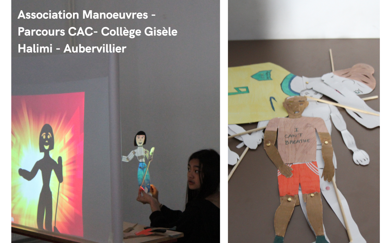 C’est la cie Shabano qui a accompagné les élèves d’une classe de CM2 et d’une classe de 6e autour du théâtre d’ombres, du langage visuel, la création d’un univers plastique et la construction d’un récit poétique en déclinant la thématique du Vivre ensemble. Les élèves de CM2 ont écrit des lettres sur leur inquiétudes et questions à propos du collège et les collégien.nes ont également pu écrire leur conseils. Des ateliers plastiques ont ensuite permis la construction du spectacle final.