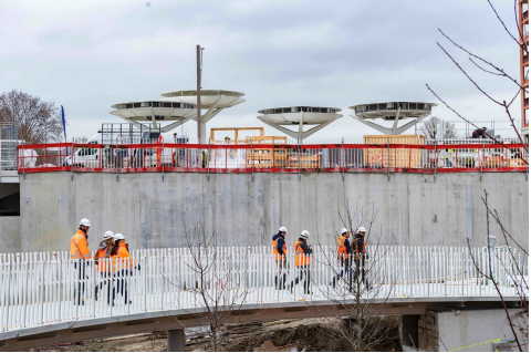 Filtre à particule Para PM sur le parvis du Village Olympique, Photographie de la SOLIDEO, publiée sur Linkedin par la SOLIDEO en janvier 2023